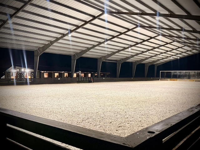 • Brand-new 90’ x 200’ red iron covered arena with all-weather GGT footing, mirrors, automatic irrigation, and a private well, featuring lights and a sound system so you can ride to your favorite music